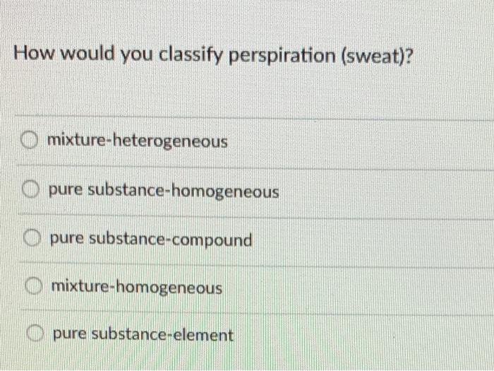 Solved How Would You Classify Perspiration Sweat Chegg Com